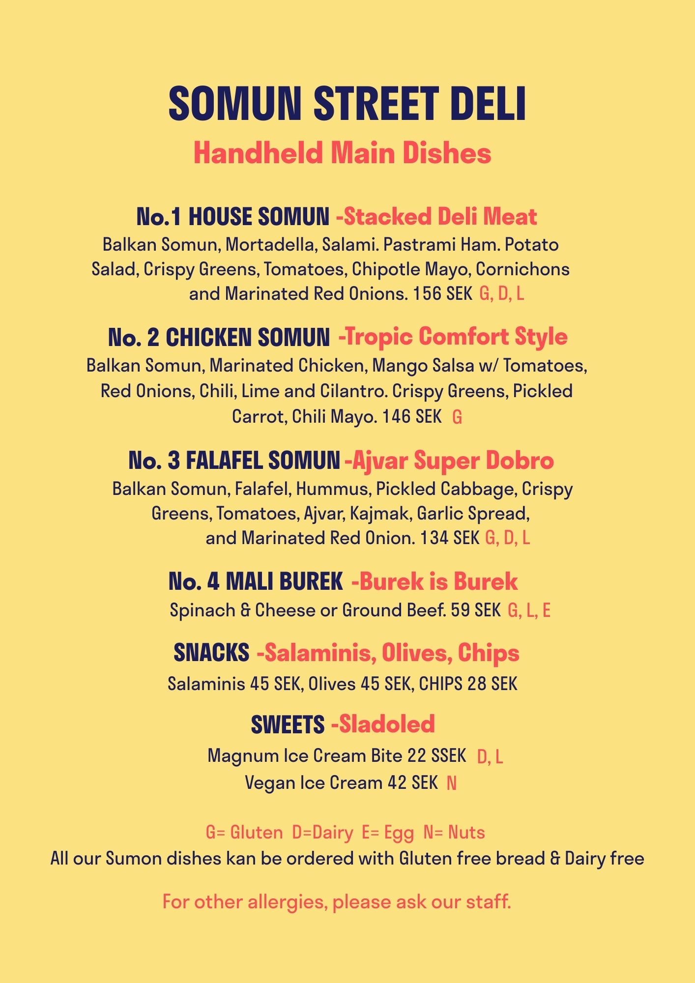 Vi som driver detta projekt lever dagligen med utmaningar kring matallergener i våra privatliv. Vi vet därför exakt hur jobbigt det kan vara att gå på restaurang och känna sig osäkra på om det innehåller något som man inte tål. Våga fråga, den där extra frågan när du beställer så vi verkligen säkerställer att du inte får i dig något du inte tål. Men ett viktigt tillägg är att i vår miljö kan vi aldrig fullt ut lova att inget korskontimineras då flera olika maträtter används i samma ugn. Vi hanterar dock aldrig ägg på plats i vårat kök, dock i vissa av våra rätter återfinns ägg, tex i vår Burek.